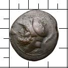 Bärtiger Kopf des Ares mit bebuschtem korinthischem Helm nach l., am Helmkessel ein Greif, unter dem Hals ein Blitzbündel. |