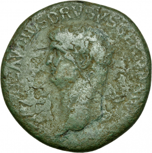 Vorderseite: NERO CLAVDIVS DRVSVS GERMANICVS IMP. Kopf des Nero Claudius Drusus nach l.